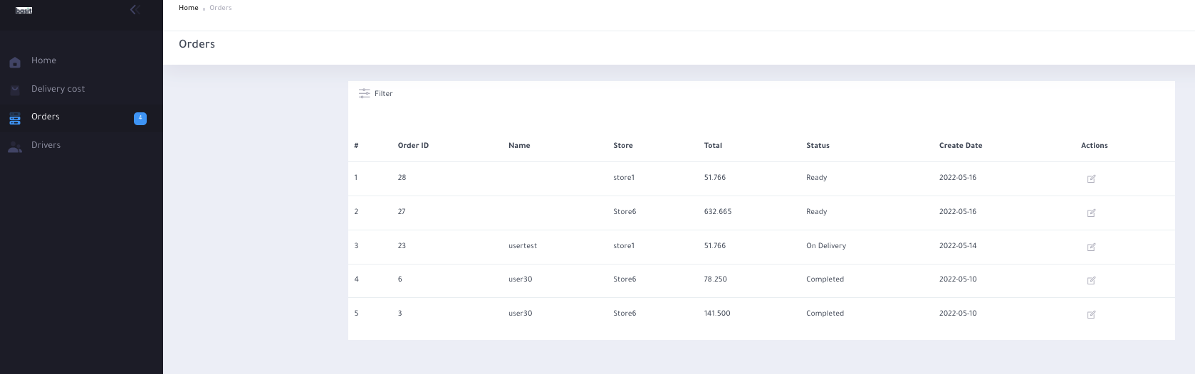 Next, Press on the edit button from the action list, and the details of the order will be shown on the screen.