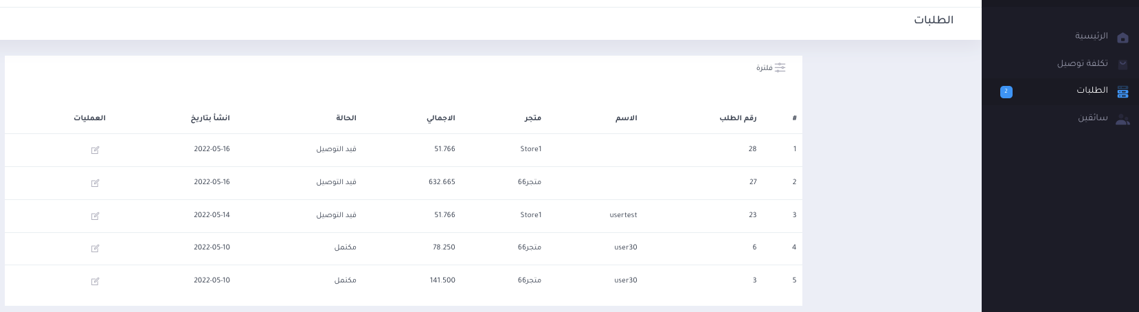قم، باختيار الطلب المراد تعديله واضغط علي زر التعديل من قائمة العمليات